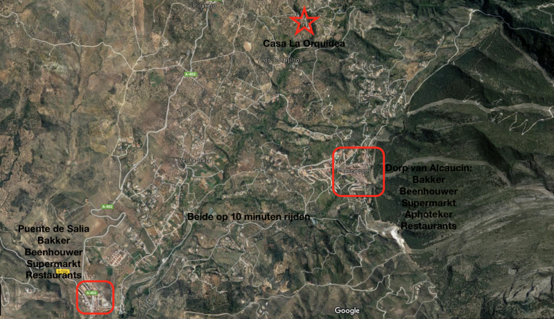 Casa La Orquidea ligt in Alcaucin. Meer bepaald in de urbanisatie “Las Huertas”. Een urbanisatie met een 12-tal huizen op enkele minuten rijden van de “grote” baan.