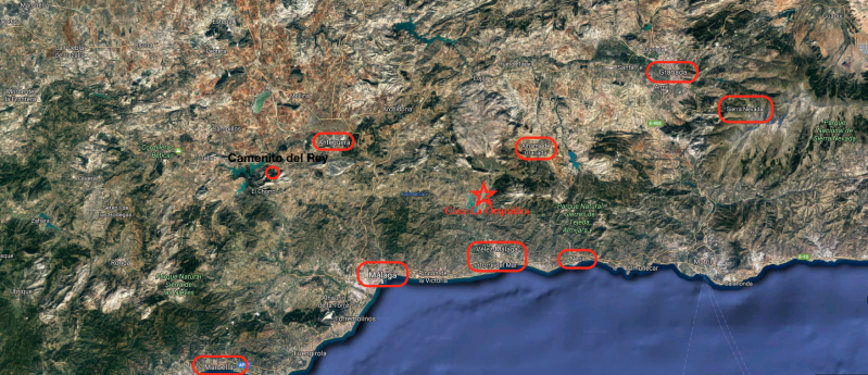 De dichtstbijzijnde kustdorpen zijn Torre del Mar en Caleta de Velez en liggen op 30 minuten rijden, beide zijn verbonden door een lange boulevard. Het kustdorp Nerja ligt op 45 minuten rijden.
